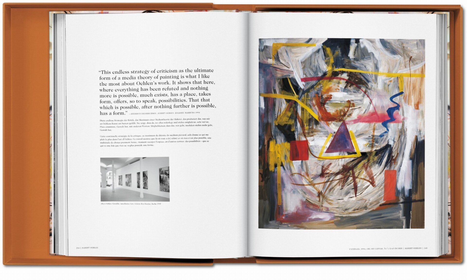 Esta monografía XL abarca todo el ámbito de la obra de Oehlen: Roberto Ohrt trata los años tempranos, cuando Oehlen adquirió un nombre propio al costado de Kippenberger, Büttner y otros, como parte de una escena que rompió reglas en el arte y la música rock. Klaus Kertess examina los años a partir de 1988, cuando Oehlen se vio a sí mismo de manera más consciente como pintor y comenzó sus primeras obras abstractas, antes de continuar explorando los límites del medio. Martin Prinzhorn y John Corbett inspeccionan aspectos de la iconografía de Oehlen, y Oehlen analiza sus pinturas digitales en una conversación con Corbett. Una biografía y una bibliografía exhaustivas redondean este completo estudio. Aunque los fans de Oehlen se regocijarán con la publicación de este libro impresionante, nadie interesado en el arte contemporáneo debería dejar pasar esta oportunidad única de descubrir el extraordinario corpus de obras de Oehlen.