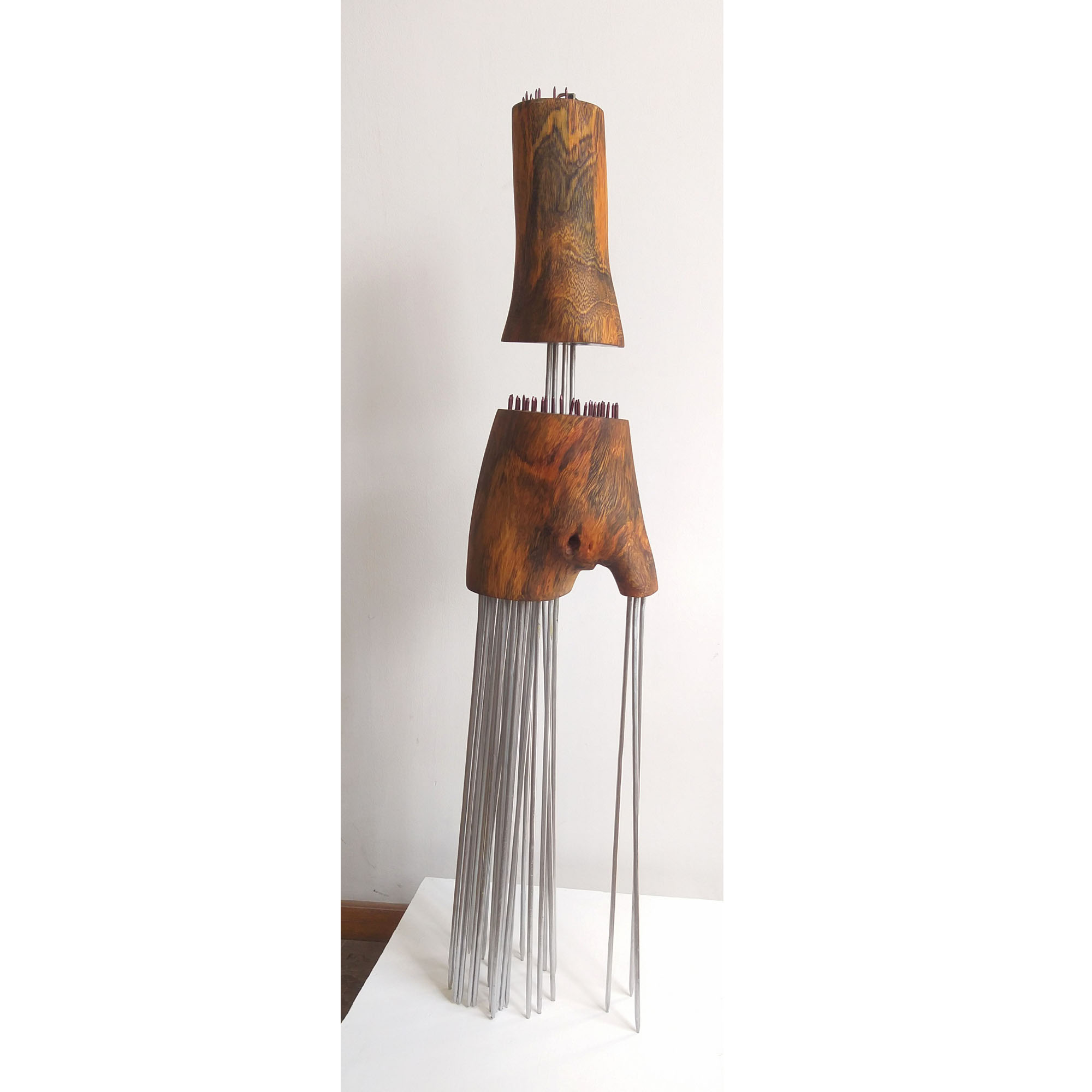Madera, metal, tarjeta electrónica y pigmento