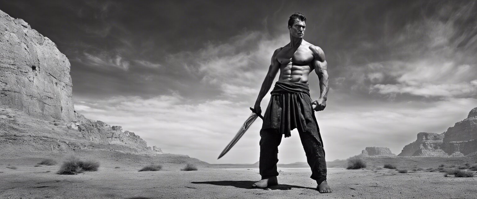 En la densidad de la intensidad emocional, un hombre está inmerso en su interior tormentoso, y se presenta ante nosotros como la personificación de la ira. En medio de la desolación, su furia se manifiesta en un torbellino de caos que gira a su alrededor, constituyendo un testamento visual a la potencia de la emoción humana.2023-12-21-04-01-34
