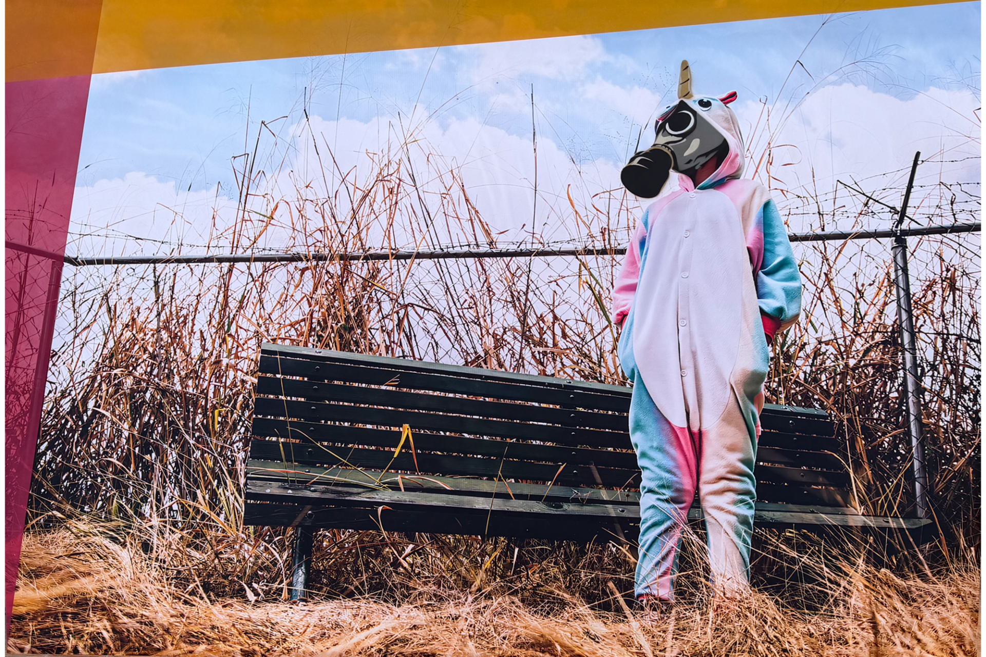Sublimación sobre loneta impermeable intervenida con pintura en aerosol